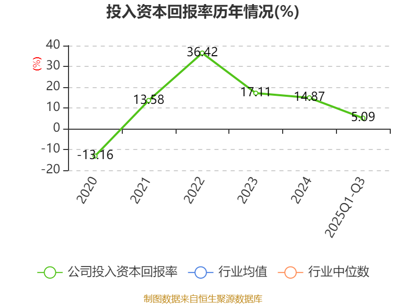 盈利能力方面, 2025年前三季度公司加权平均净资产收益率为5.37%,同比下降10.44个百分点。公司2025年前三季度投入资本回报率为5.09%,较上年同期下降8.91个百分点。