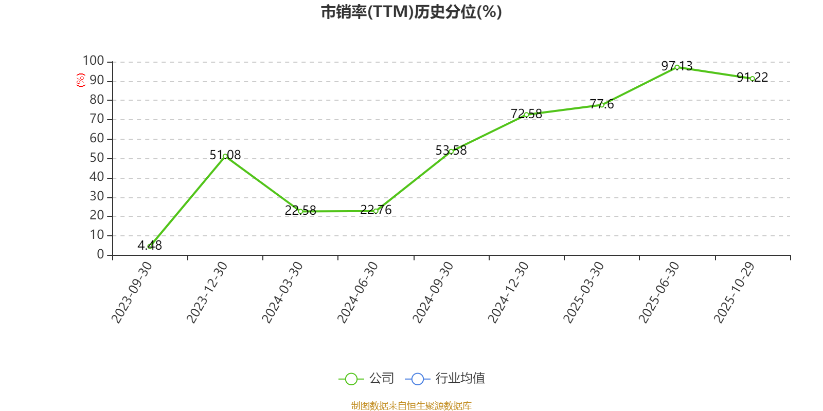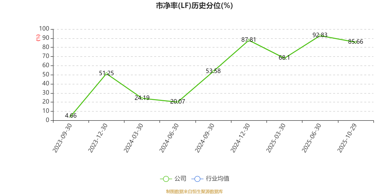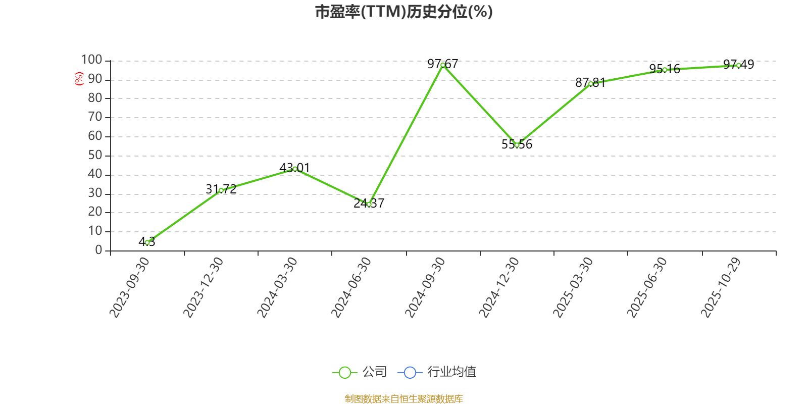 市盈率、市净率为负时,不显示当期分位数,会导致折线图中断。