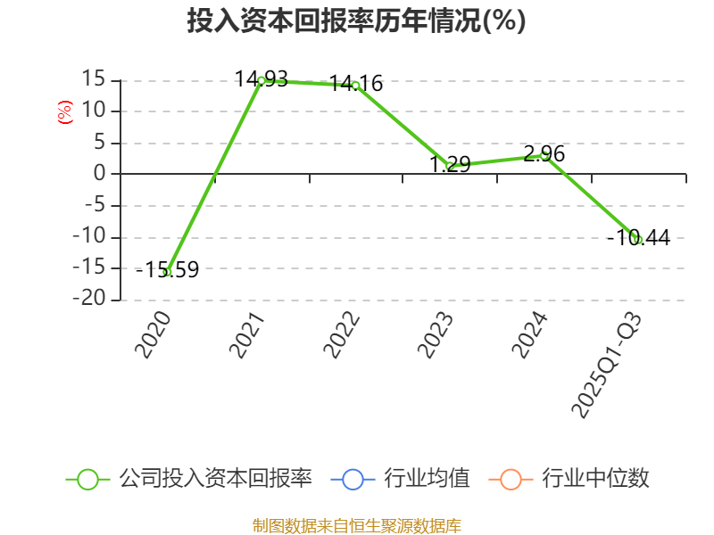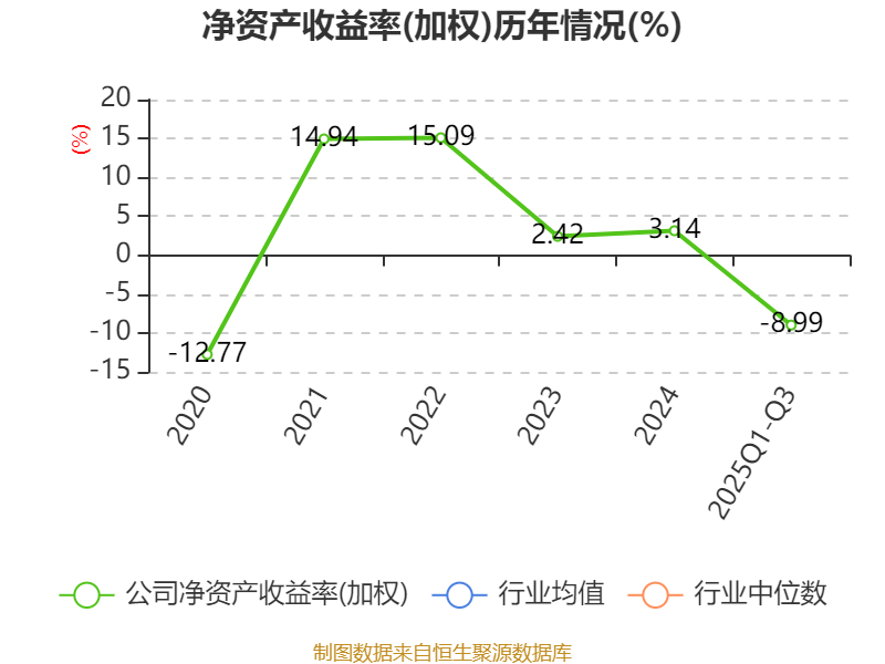 盈利能力方面, 2025年前三季度公司加权平均净资产收益率为-8.99%,同比下降0.91个百分点。公司2025年前三季度投入资本回报率为-10.44%,较上年同期下降1.11个百分点。