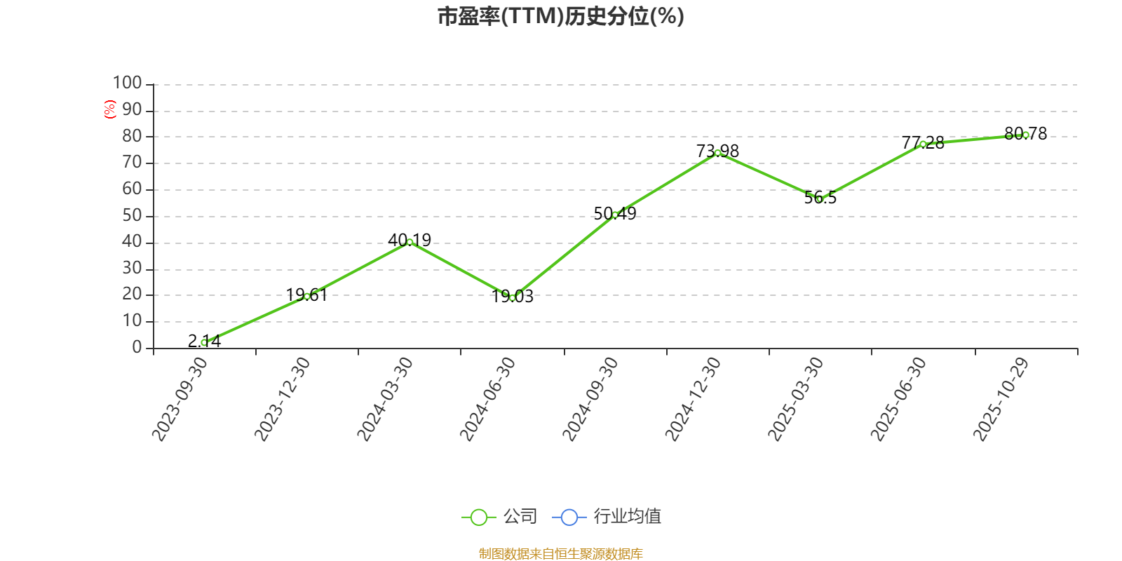 市盈率、市净率为负时,不显示当期分位数,会导致折线图中断。