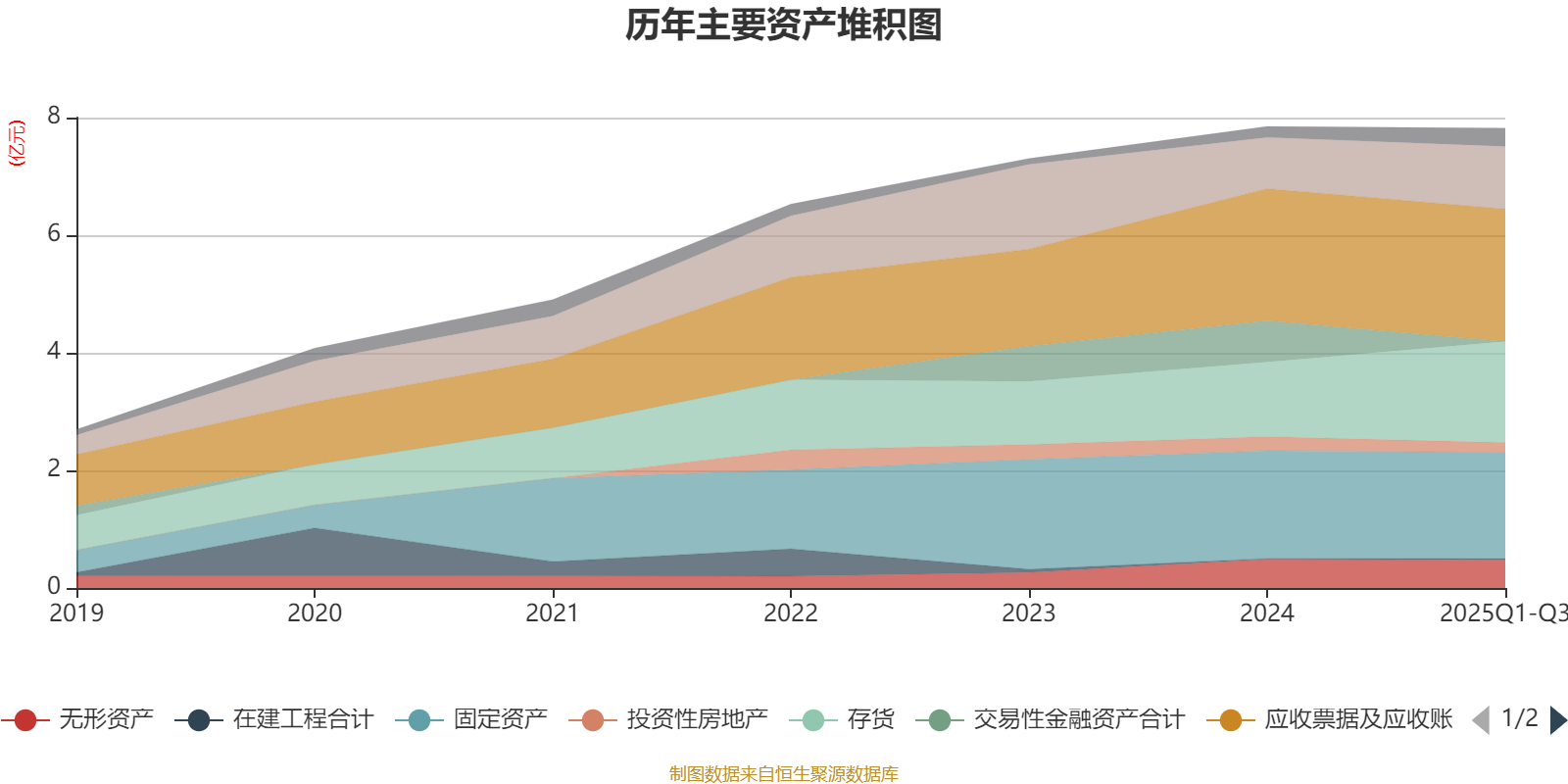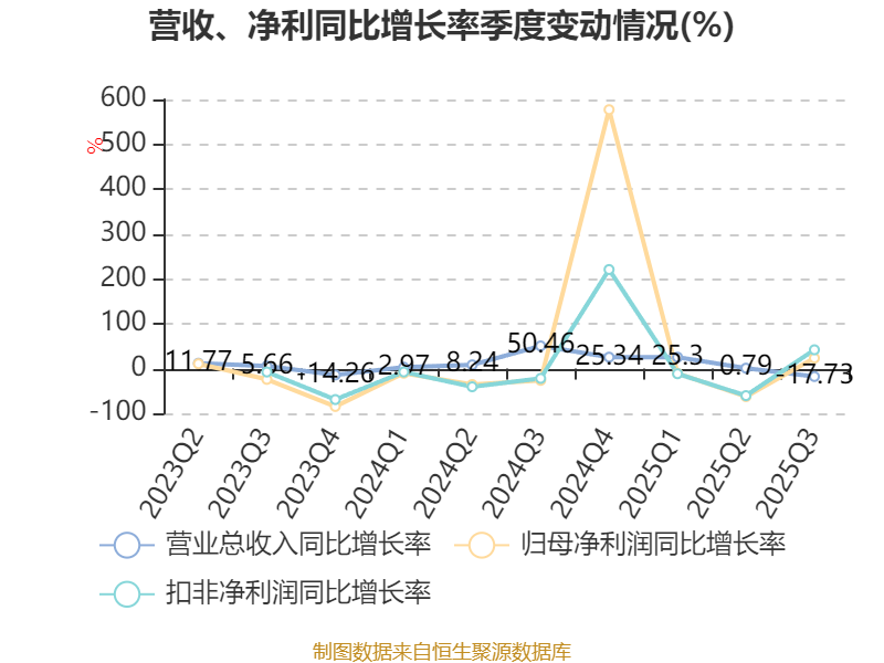 资产重大变化方面,截至2025年三季度末,公司交易性金融资产合计较上年末减少100%,占公司总资产比重下降8.94个百分点;存货较上年末增加35.56%,占公司总资产比重上升5.82个百分点;货币资金较上年末增加22.13%,占公司总资产比重上升2.51个百分点;预付款项较上年末增加393.58%,占公司总资产比重上升1.49个百分点。
