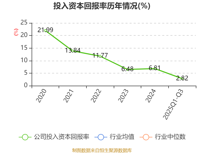 盈利能力方面, 2025年前三季度公司加权平均净资产收益率为3.27%,同比下降1.07个百分点。公司2025年前三季度投入资本回报率为2.82%,较上年同期下降1.13个百分点。