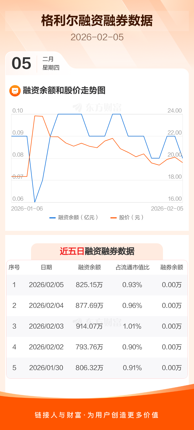 交易所最新数据显示,格利尔于2026年2月5日获融资买入71.05万元,融资偿还123.59万元,当日融资净偿还52.54万元。目前,该股融资余额825.15万,占流通市值比例为0.93%。