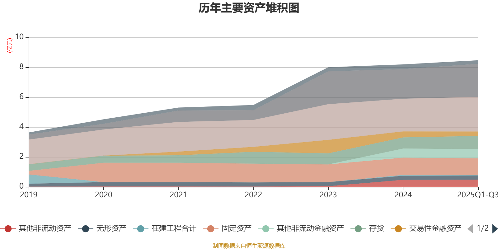 资产重大变化方面,截至2025年三季度末,公司货币资金较上年末增加11.59%,占公司总资产比重上升1.94个百分点;应收款项融资较上年末减少92.91%,占公司总资产比重下降1.73个百分点;交易性金融资产合计较上年末减少24.92%,占公司总资产比重下降1.34个百分点;存货较上年末增加17.4%,占公司总资产比重上升1.24个百分点。