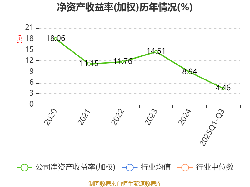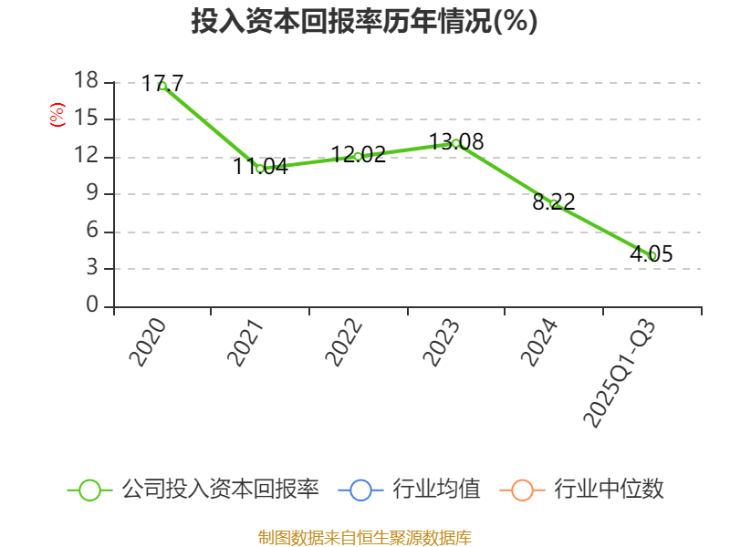盈利能力方面, 2025年前三季度公司加权平均净资产收益率为4.46%,同比下降2.73个百分点。公司2025年前三季度投入资本回报率为4.05%,较上年同期下降2.64个百分点。