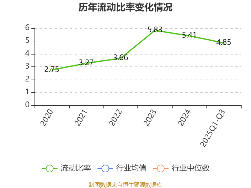 2025年前三季度,公司流动比率为4.85,速动比率为4.12。