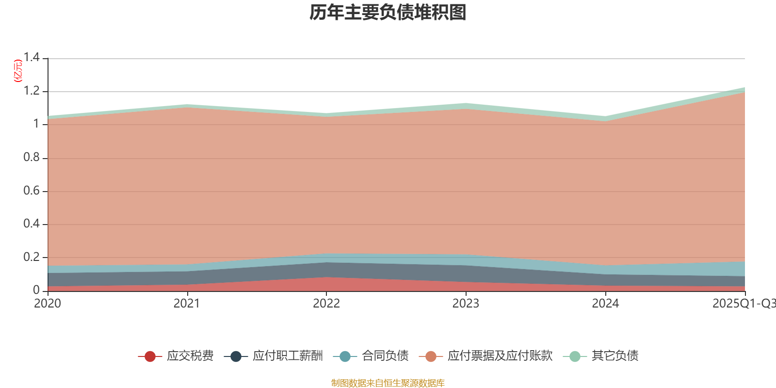 负债重大变化方面,截至2025年三季度末,公司应付票据及应付账款较上年末增加17.54%,占公司总资产比重上升1.45个百分点;合同负债较上年末增加61.66%,占公司总资产比重上升0.37个百分点;应付职工薪酬较上年末减少11%,占公司总资产比重下降0.12个百分点;应交税费较上年末减少13.64%,占公司总资产比重下降0.06个百分点。
