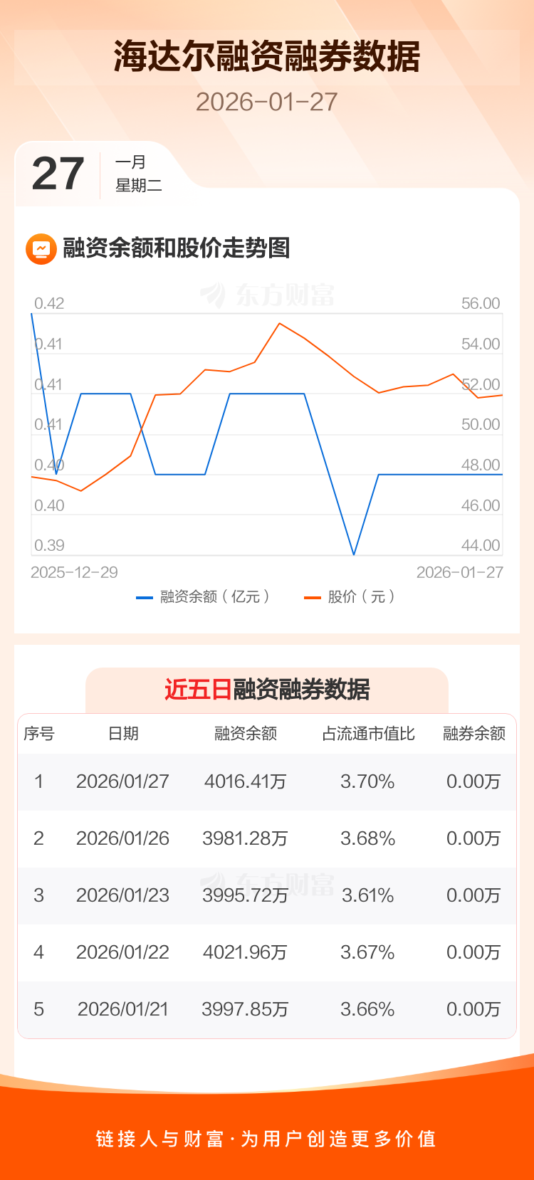 交易所最新数据显示,海达尔于2026年1月27日获融资买入96.69万元,融资偿还61.57万元,当日融资净买入35.13万元。目前,该股融资余额4016.41万,占流通市值比例为3.70%。