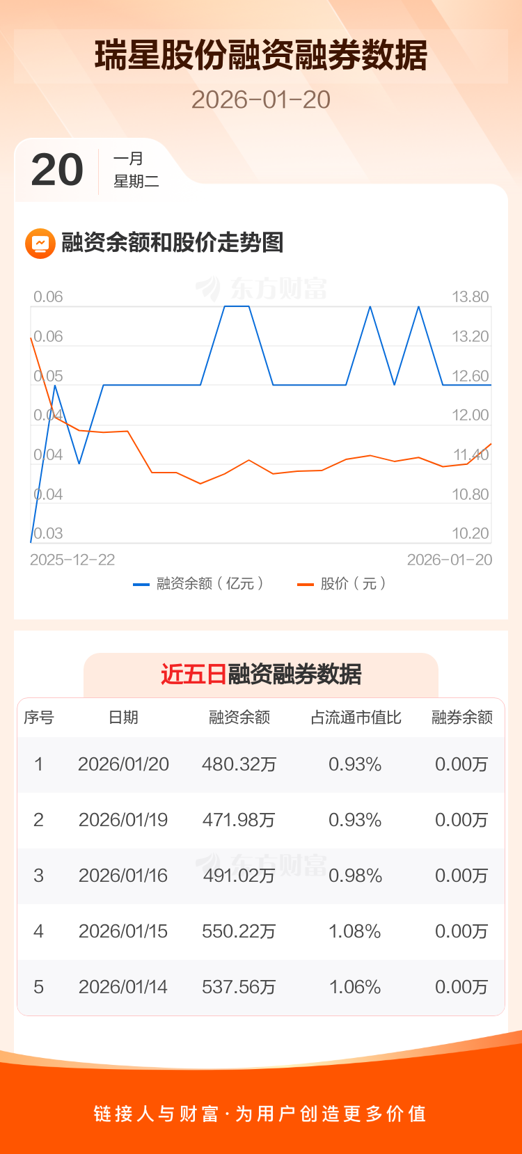 交易所最新数据显示,瑞星股份于2026年1月20日获融资买入204.86万元,融资偿还196.52万元,当日融资净买入8.35万元。目前,该股融资余额480.32万,占流通市值比例为0.93%。