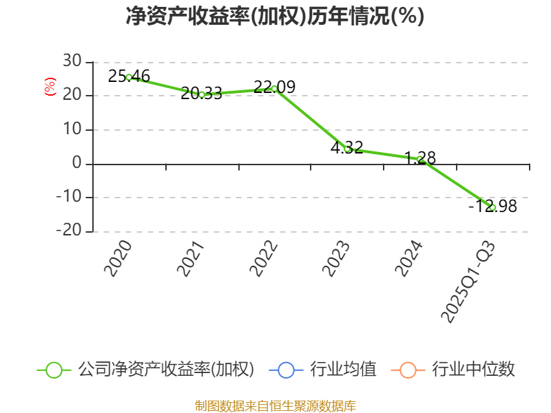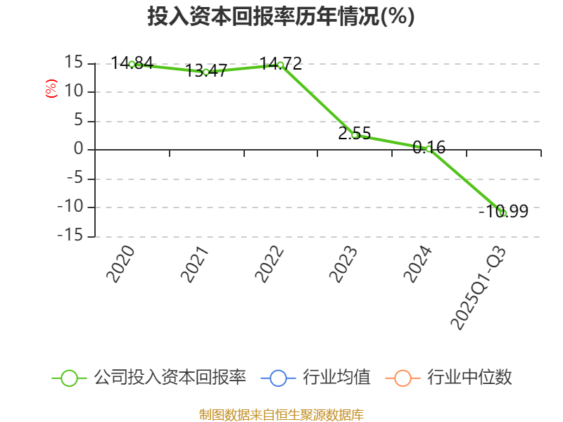 盈利能力方面, 2025年前三季度公司加权平均净资产收益率为-12.98%,同比下降10.56个百分点。公司2025年前三季度投入资本回报率为-10.99%,较上年同期下降8.44个百分点。