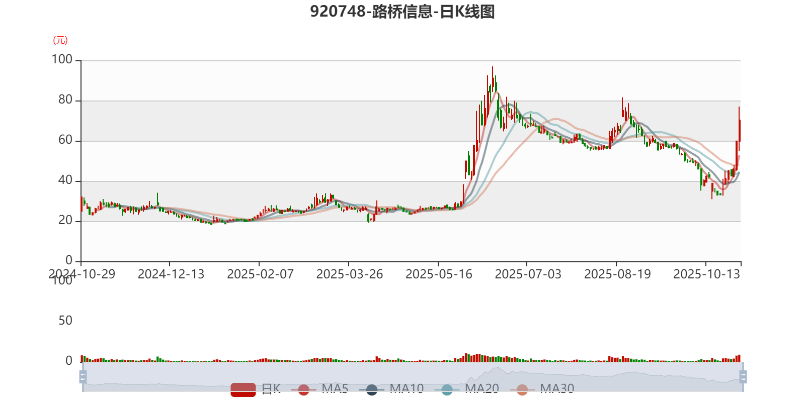以10月29日收盘价计算,路桥信息目前市盈率(TTM)约为-221.65倍,市净率(LF)约21.82倍,市销率(TTM)约32.66倍。