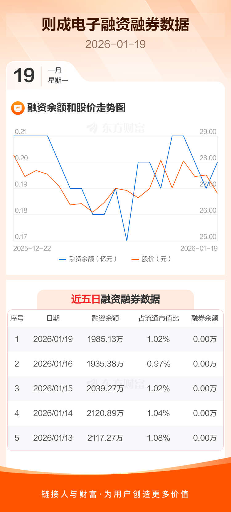 交易所最新数据显示,则成电子于2026年1月19日获融资买入184.61万元,融资偿还134.85万元,当日融资净买入49.76万元。目前,该股融资余额1985.13万,占流通市值比例为1.02%。