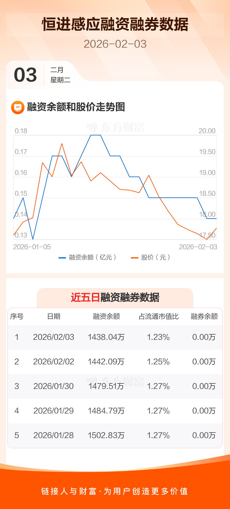 交易所最新数据显示,恒进感应于2026年2月3日获融资买入18.42万元,融资偿还22.46万元,当日融资净偿还4.05万元。目前,该股融资余额1438.04万,占流通市值比例为1.23%。