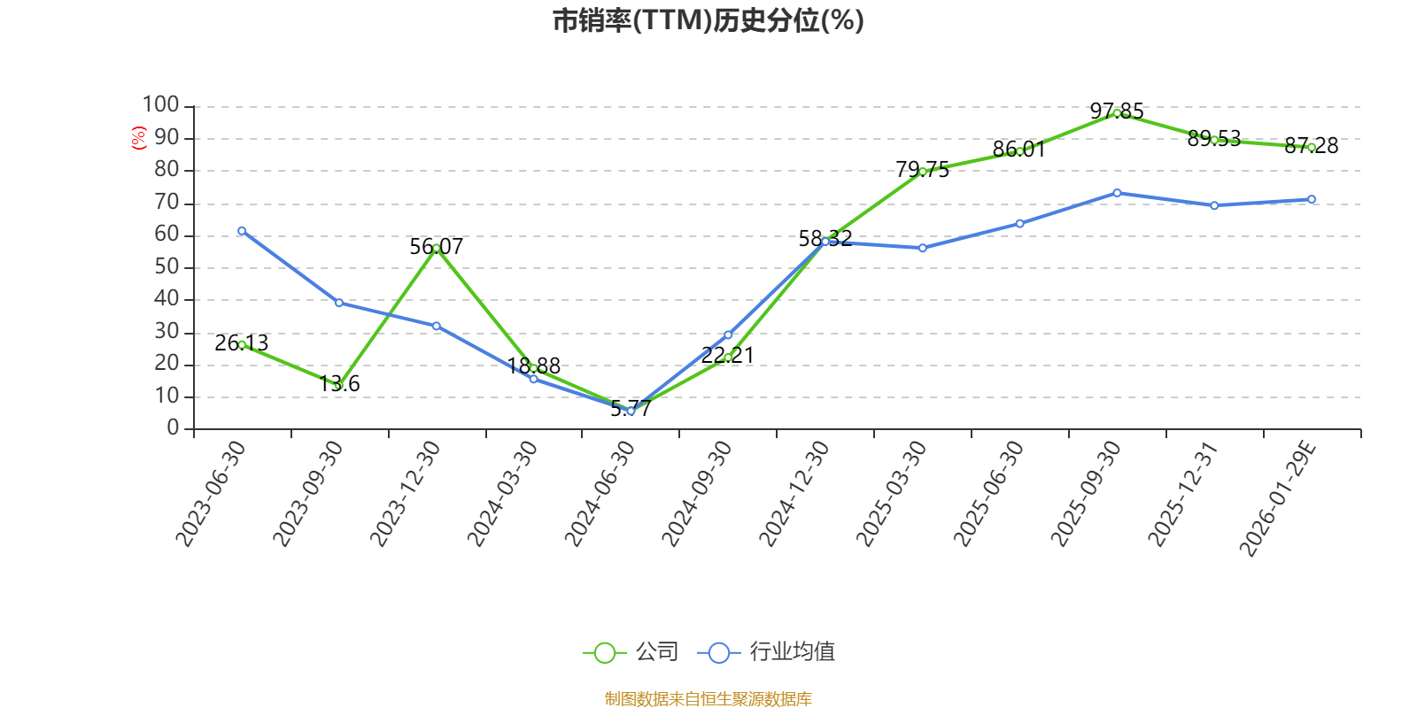文中市盈率和市销率采用TTM方式,即以截至最近一期财报(含预报)12个月的数据计算。市净率采用LF方式,即以最近一期财报数据计算。三者的分位数计算区间均为公司上市以来至最新公告日。