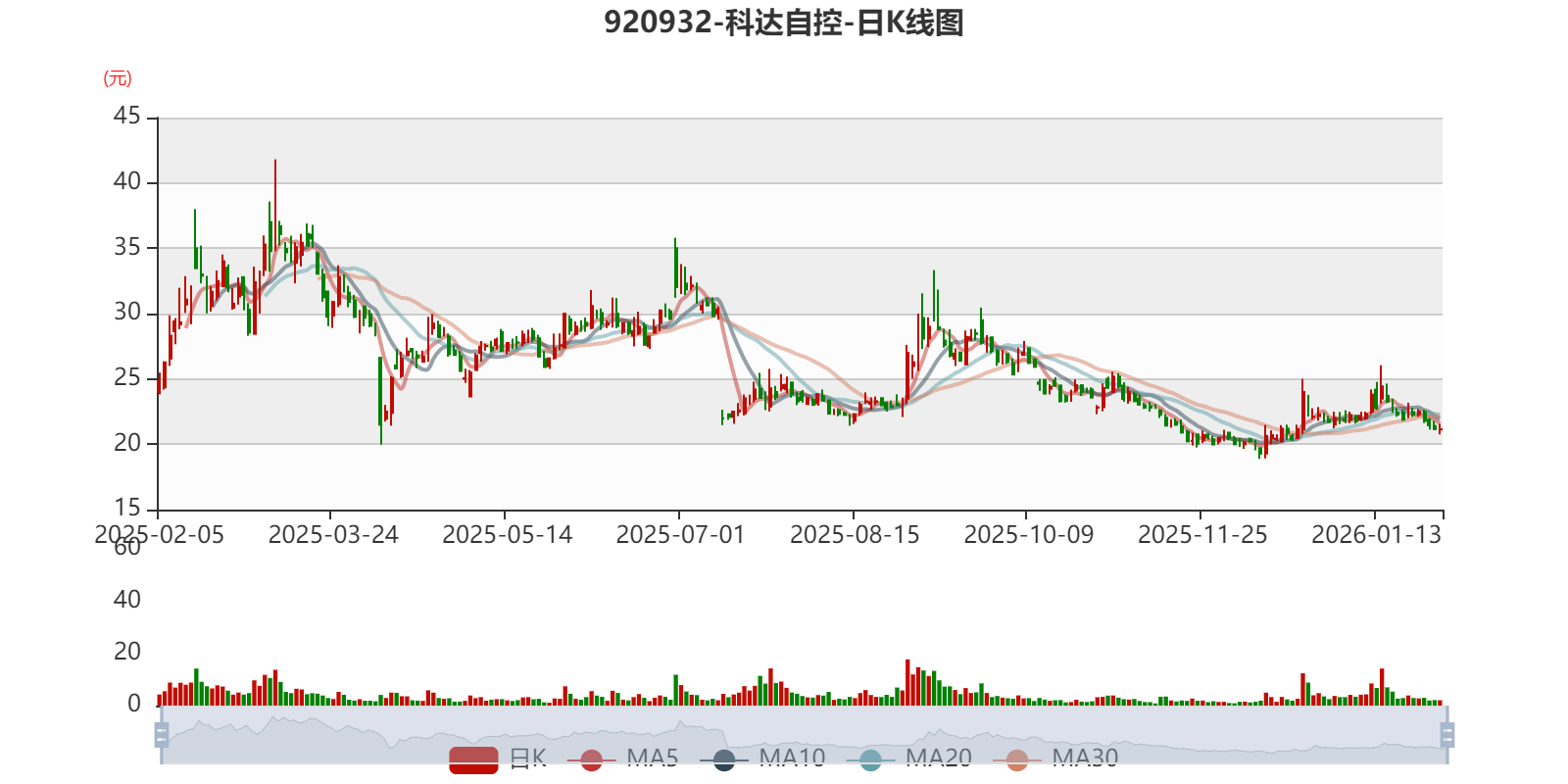 中证智能财讯科达自控(920932)1月29日晚间披露2025年度业绩预告,预计2025年归母净利润亏损4000万元至5000万元,上年同期盈利3451.16万元。以最新收盘价计算,市净率(LF)约3.19倍,市销率(TTM)约5.77倍。