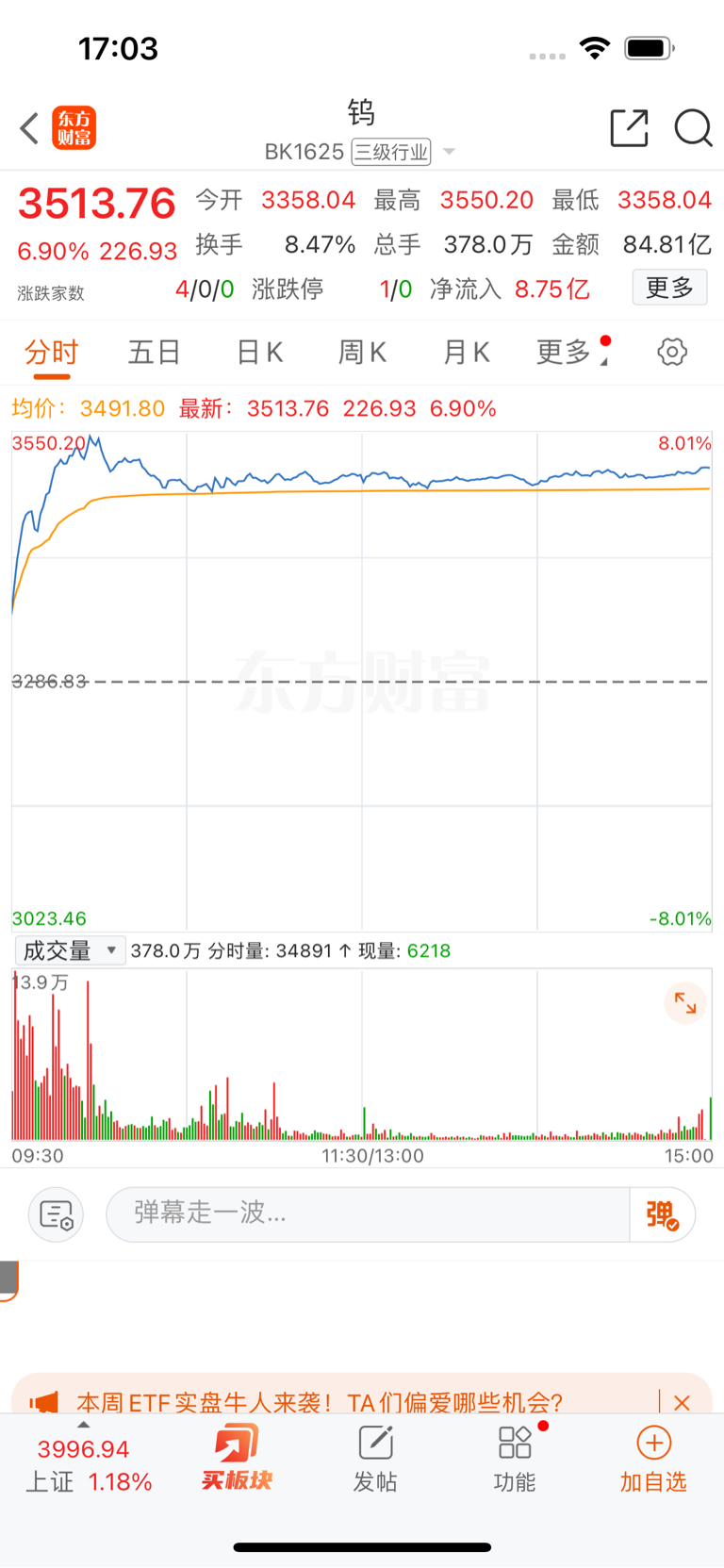 $钨(BK1625)$ $中国电信(HK|00728)$ $东方财富(SZ300059)$ 新的三级行业来看看