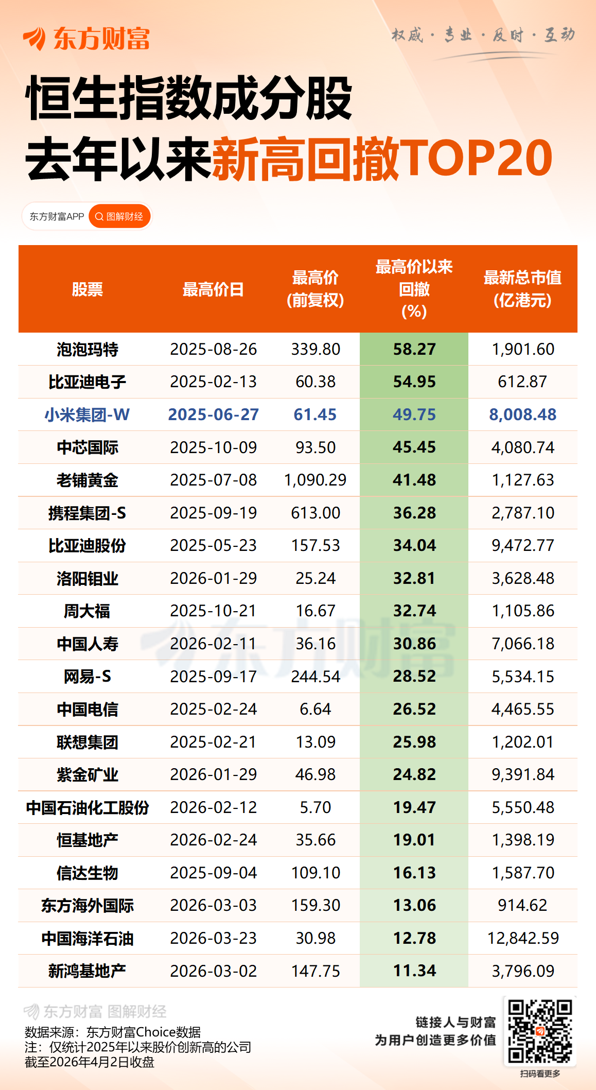事实上,外界最为关心的是,王文怒怼小米,是否与自身持有小米股票、因股价下跌导致亏损有关?这一点目前无从得知。但从小米集团的股价表现来看,截至4月3日收盘,股价报30.88港元,今年以来累计下跌21.42%,相较于2025年6月的高点61.45港元,股价近乎腰斩。