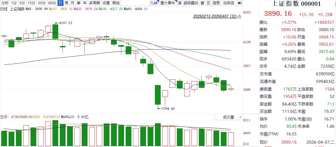 清明小长假后的首个交易日,上证指数小幅高开后出现窄幅震荡,盘中反弹短暂站上3900点整数关口后,便出现明显抛压,最终在多次尝试突破未果后,涨幅开始收窄。深证成指、创业板指全日走势同上证指数相仿,早盘反弹接近5日均线后受阻,最终均收出十字星。
