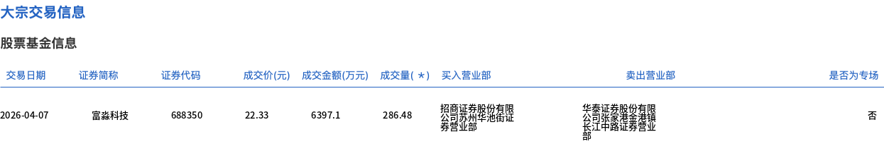 富淼科技今日大宗交易折价成交286.48万股,成交额6397.1万元