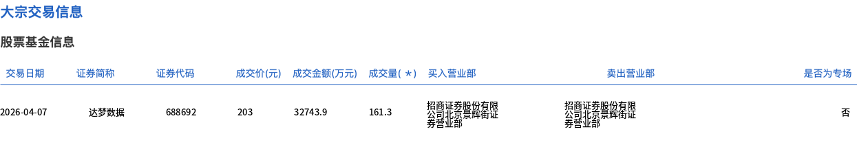 达梦数据今日大宗交易折价成交161.3万股,成交额3.27亿元