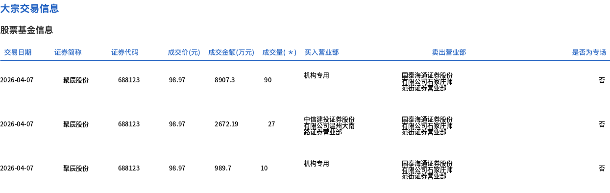 聚辰股份今日大宗交易折价成交127万股,成交额1.26亿元