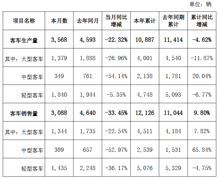 金龙汽车:3月客车产、销量均同比下降