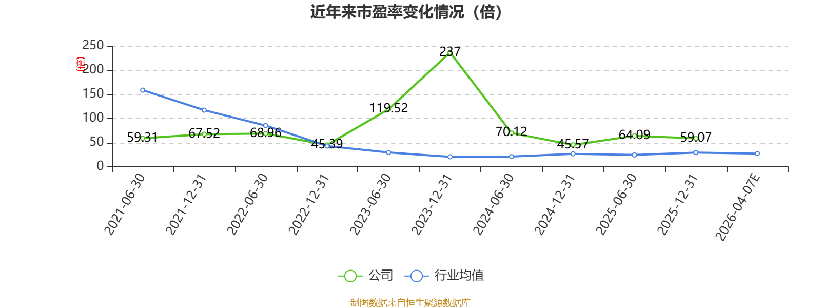 以本次披露业绩预告均值计算,公司近年市盈率(TTM)图如下所示: