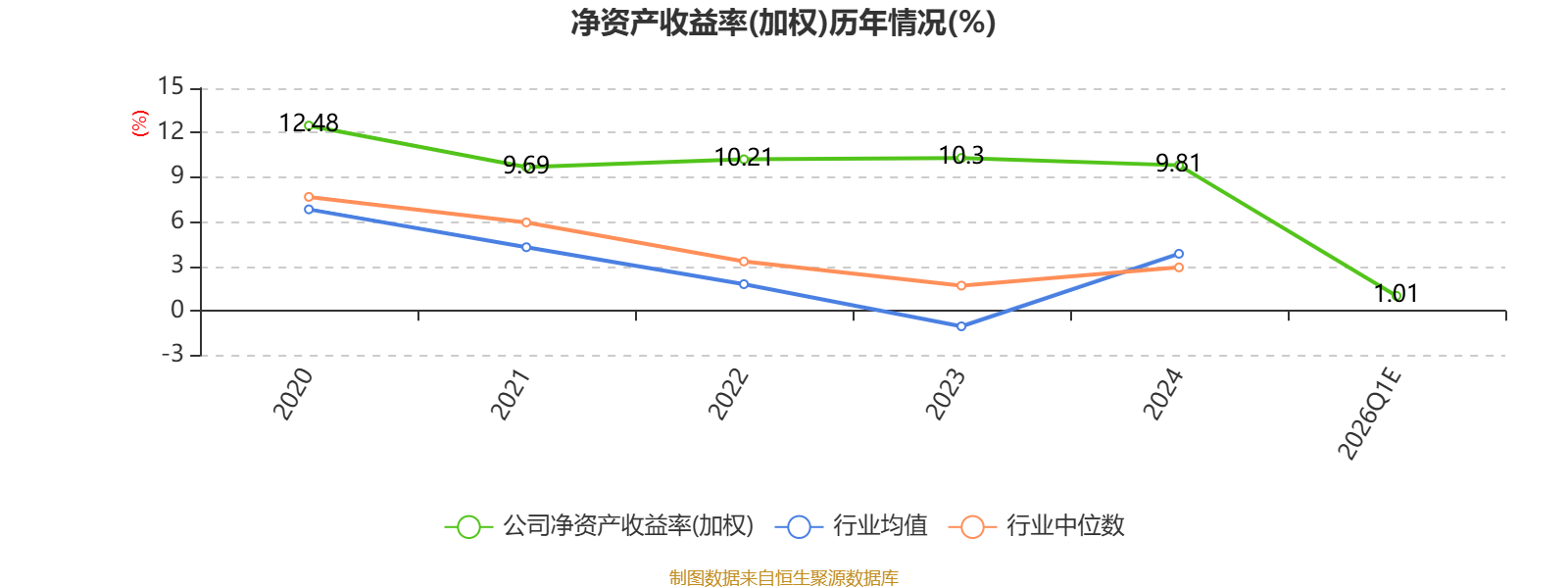 数据显示,2026年一季度公司加权平均净资产收益率为1.01%,较上年同期上升0.1个百分点。