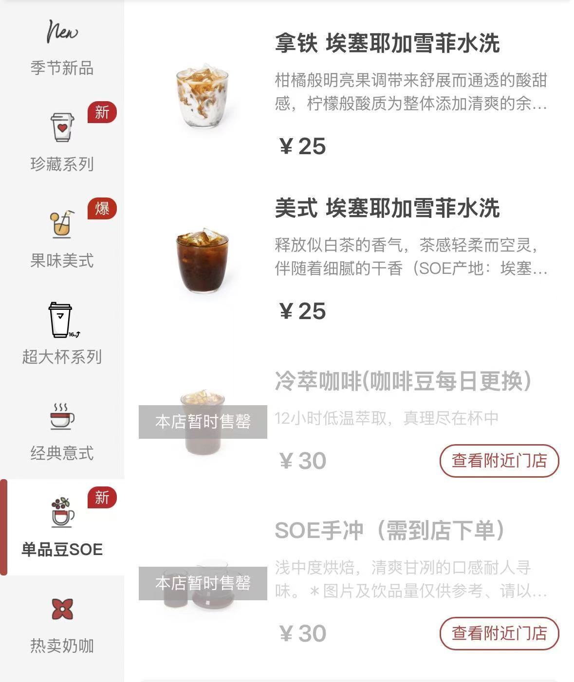 而SOE是指单一产地的咖啡豆。对于SOE饮品出现的原因,王振东表示:“主要是受到精品咖啡趋势的影响。拼配的咖啡豆产品口味太单调,(消费者)希望在里面喝到更多的花香、坚果等风味。”记者注意到,Manner的SOE产品详情页标明了SOE产地、处理法、可能尝到的风味。