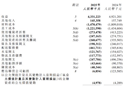 此外,2024年公司因门店效益不佳计提了高额物业及设备、使用权资产减值亏损,2025年相关减值损失大幅减少,进一步推动亏损规模收窄。