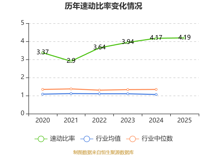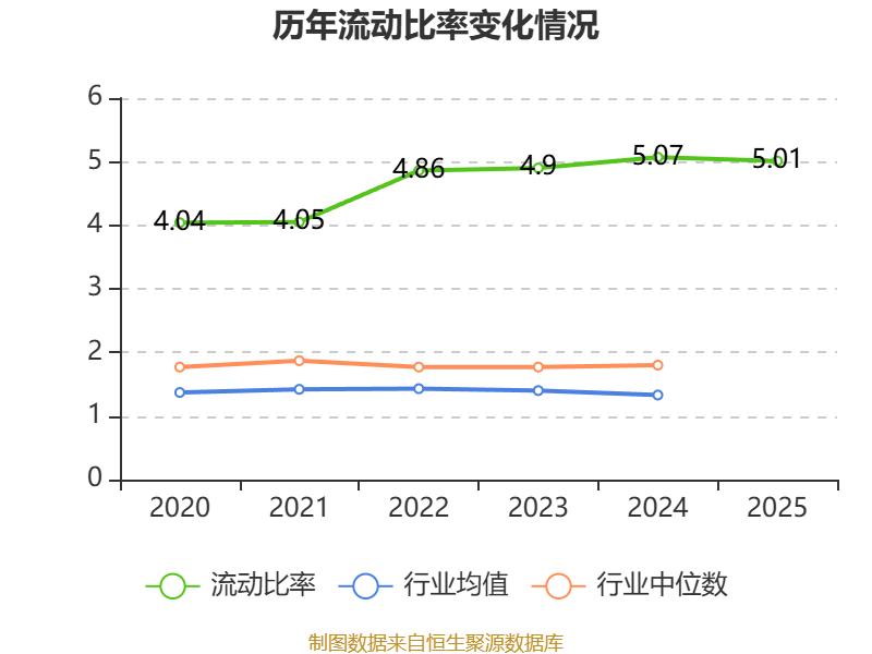2025年,公司流动比率为5.01,速动比率为4.19。