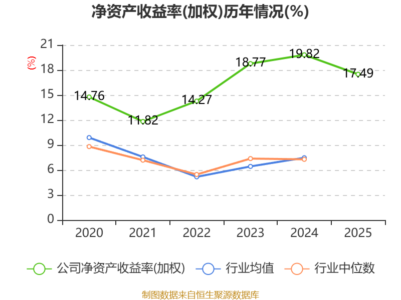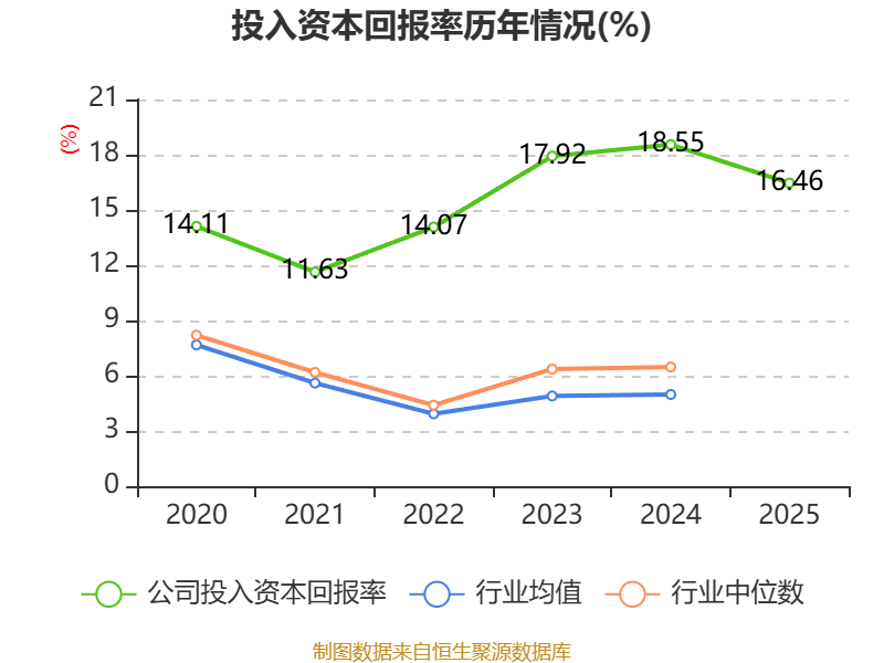 数据显示,2025年公司加权平均净资产收益率为17.49%,较上年同期下降2.33个百分点。公司2025年投入资本回报率为16.46%,较上年同期下降2.09个百分点。
