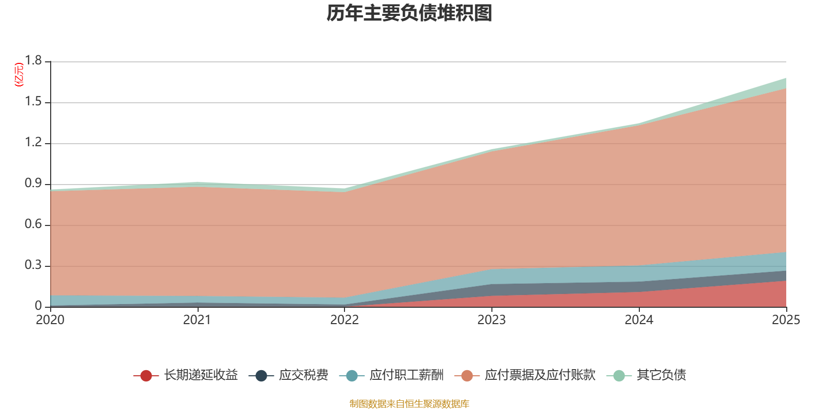 负债重大变化方面,截至2025年末,公司长期递延收益较上年末增加75.67%,占公司总资产比重上升0.61个百分点;合同负债较上年末增加467.74%,占公司总资产比重上升0.52个百分点;应付票据及应付账款较上年末增加16.99%,占公司总资产比重上升0.24个百分点;应交税费较上年末减少1.73%,占公司总资产比重下降0.11个百分点。