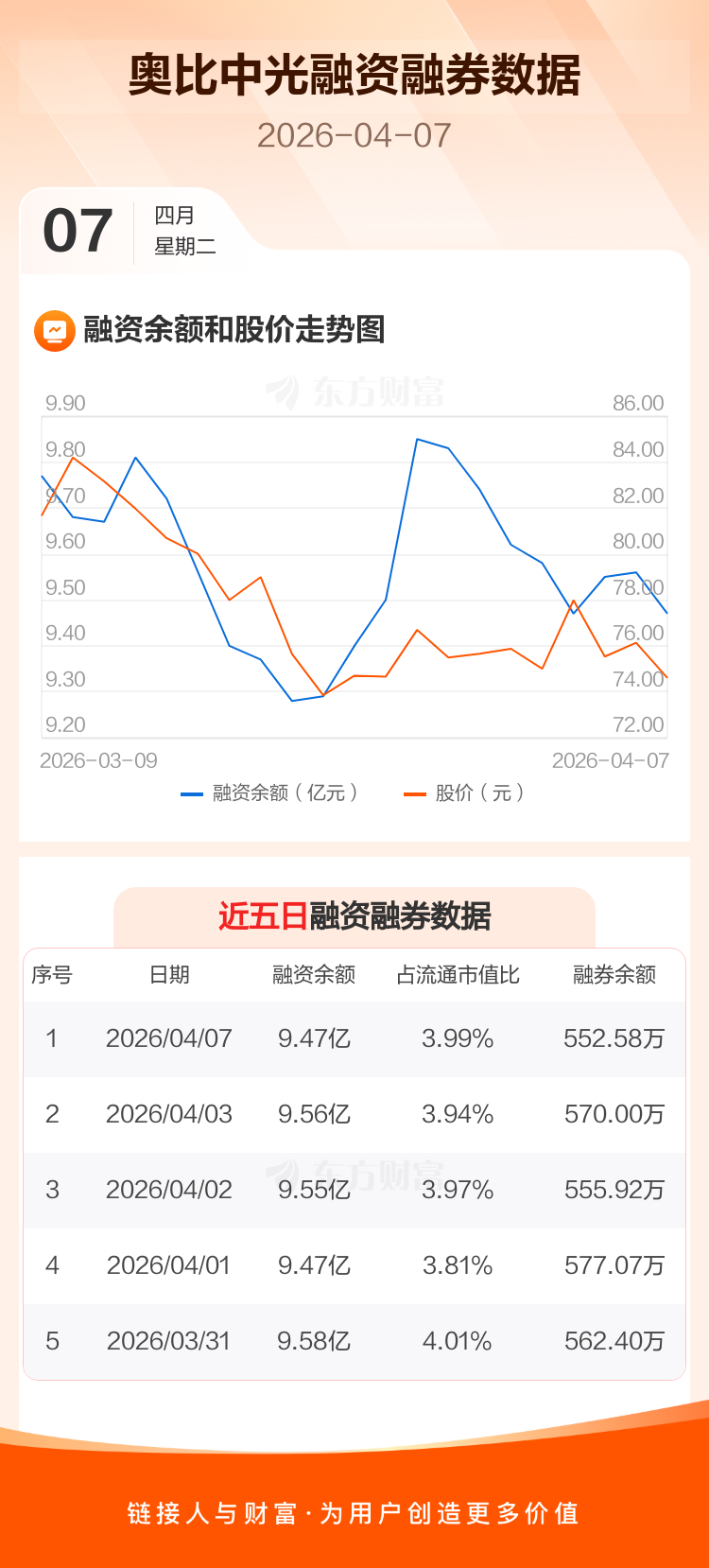 交易所最新数据显示,奥比中光于2026年4月7日获融资买入3155.24万元,融资偿还3994.31万元,当日融资净偿还839.07万元。目前,该股融资余额9.47亿,占流通市值比例为3.99%。