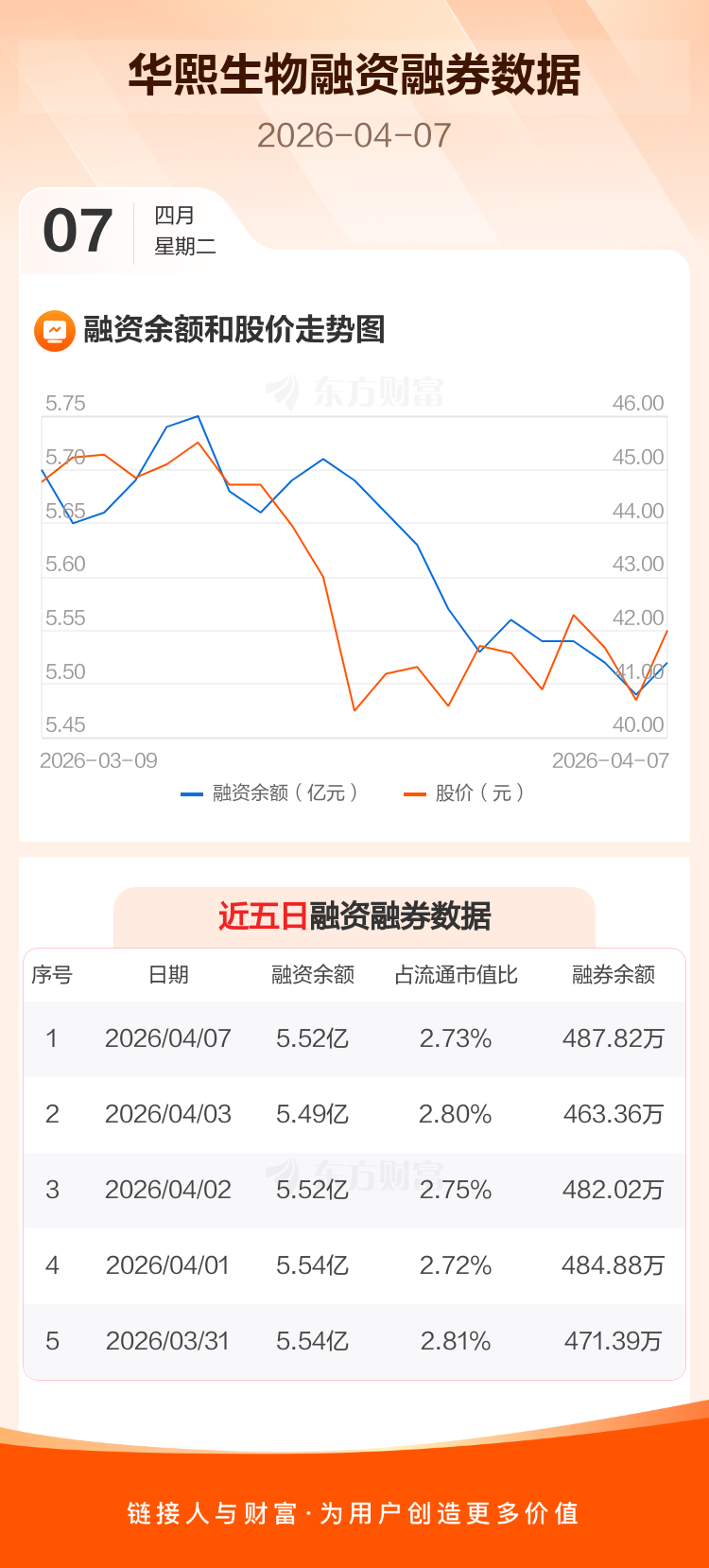 交易所最新数据显示,华熙生物于2026年4月7日获融资买入1689.16万元,融资偿还1376.32万元,当日融资净买入312.84万元。目前,该股融资余额5.52亿,占流通市值比例为2.73%。