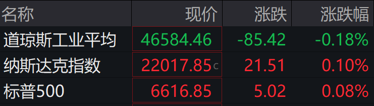 当地时间周二,美股涨跌互现,主要股指尾盘跳涨。截至收盘,道指跌0.18%,纳指涨0.10%,标普500指数涨0.08%。