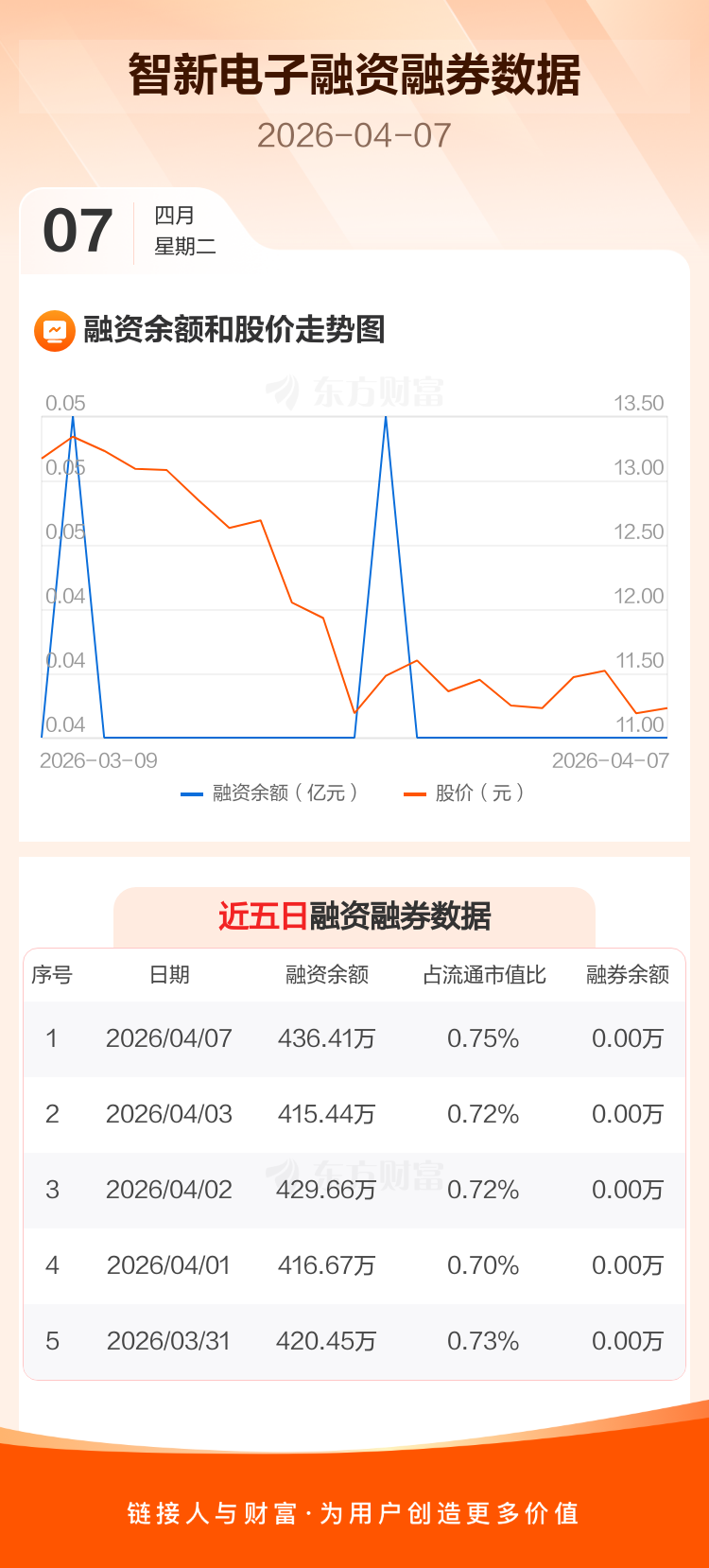交易所最新数据显示,智新电子于2026年4月7日获融资买入46.88万元,融资偿还25.92万元,当日融资净买入20.97万元。目前,该股融资余额436.41万,占流通市值比例为0.75%。