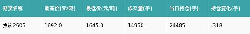 焦炭主力合约收涨1.05%