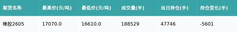 南财智讯4月8日电,盘后期货数据显示,上海期货交易所的橡胶主力合约收跌0.09%,收盘报16985.0元/吨,日内资金流出2.02亿元。其他相关指标见下表: