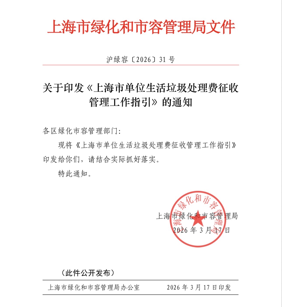 为解决单位生活垃圾收费痛点,上海已于今年印发并实施《上海市单位生活垃圾处理费征收管理办法》(沪绿容规〔2026〕1号),并于近日配套出台工作指引和优化政策通知。今天,新民晚报记者从市绿化市容局的政策解读会上获悉,新规及一系列配套政策全面升级,亮点颇多。