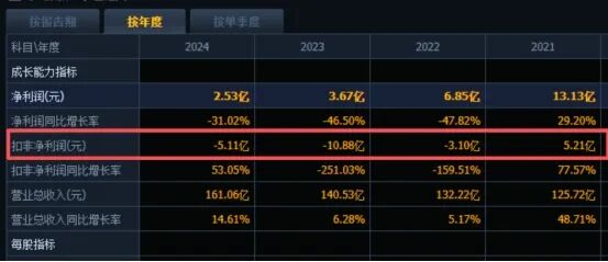 从扣非净利润来看,三安光电已连续四年亏损——2022年至2024年,分别亏损3.10亿元、10.88亿元、5.11亿元,叠加2025年亏损,四年累计亏损超过26亿元。
