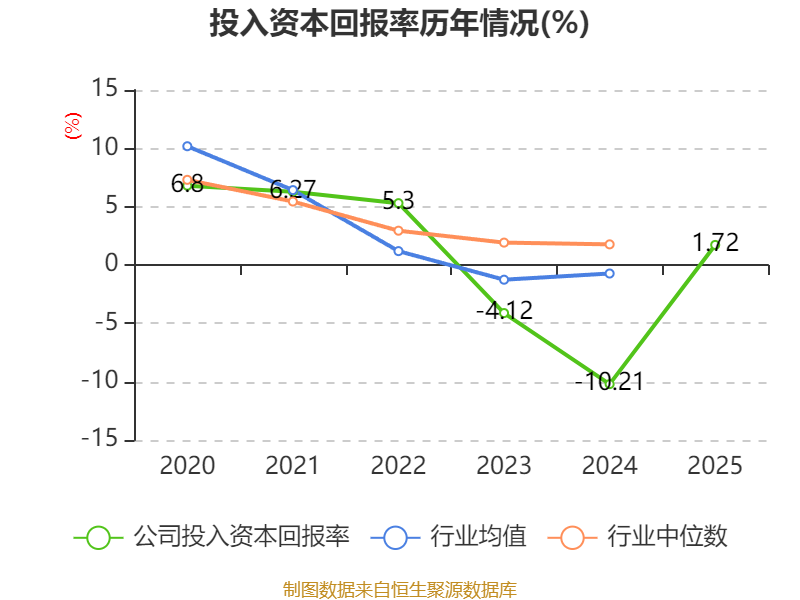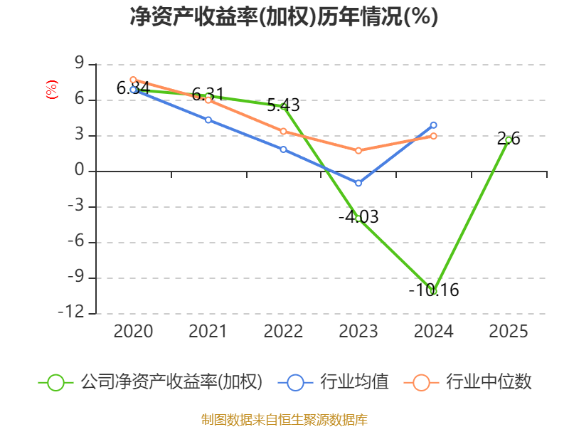 数据显示,2025年公司加权平均净资产收益率为2.6%,较上年同期上升12.76个百分点。公司2025年投入资本回报率为1.72%,较上年同期上升11.93个百分点。
