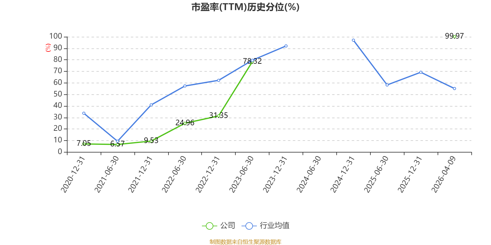 市盈率、市净率为负时,不显示当期分位数,会导致折线图中断。