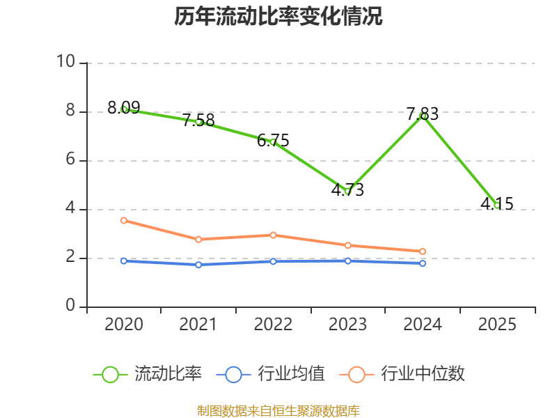 2025年,公司流动比率为4.15,速动比率为2.56。