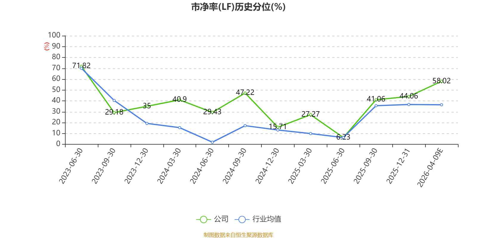 市盈率、市净率为负时,不显示当期分位数,会导致折线图中断。