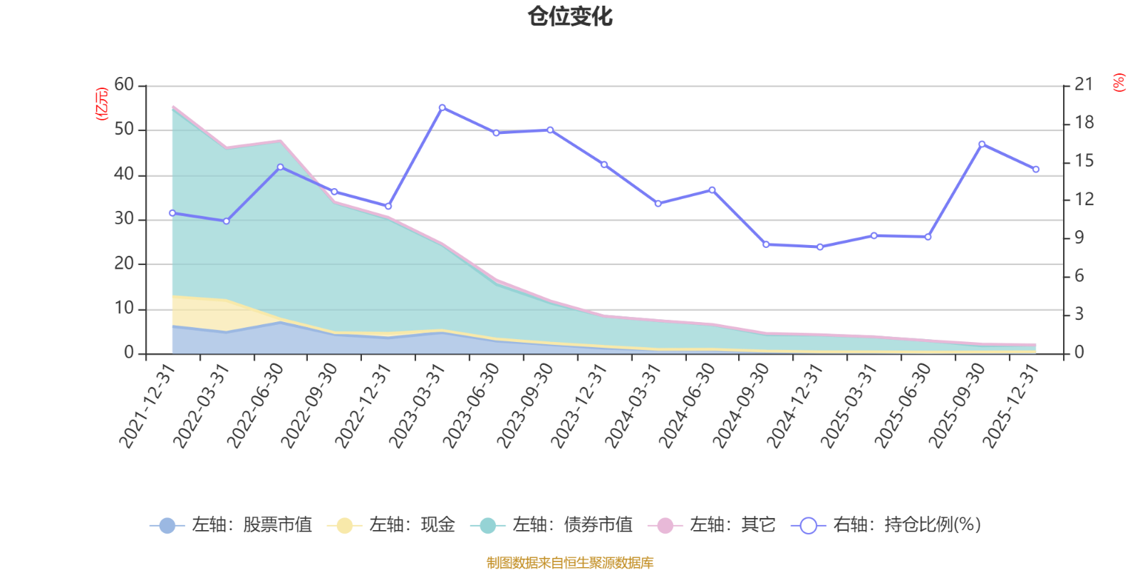 据定期报告数据统计,近三年平均股票仓位为13.3%,同类平均为19.2%。2023年一季度末基金达到19.27%的最高仓位,2024年末最低,为8.36%。