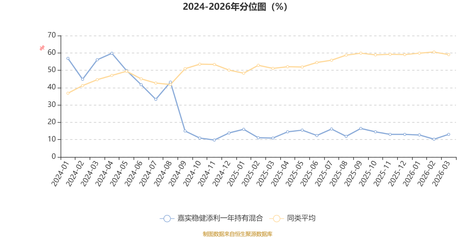 通过所选区间该基金净值增长率分位图,可以观察该基金与同类基金业绩比较情况。图为坐标原点到区间内某时点的净值增长率在同类基金中的分位数。