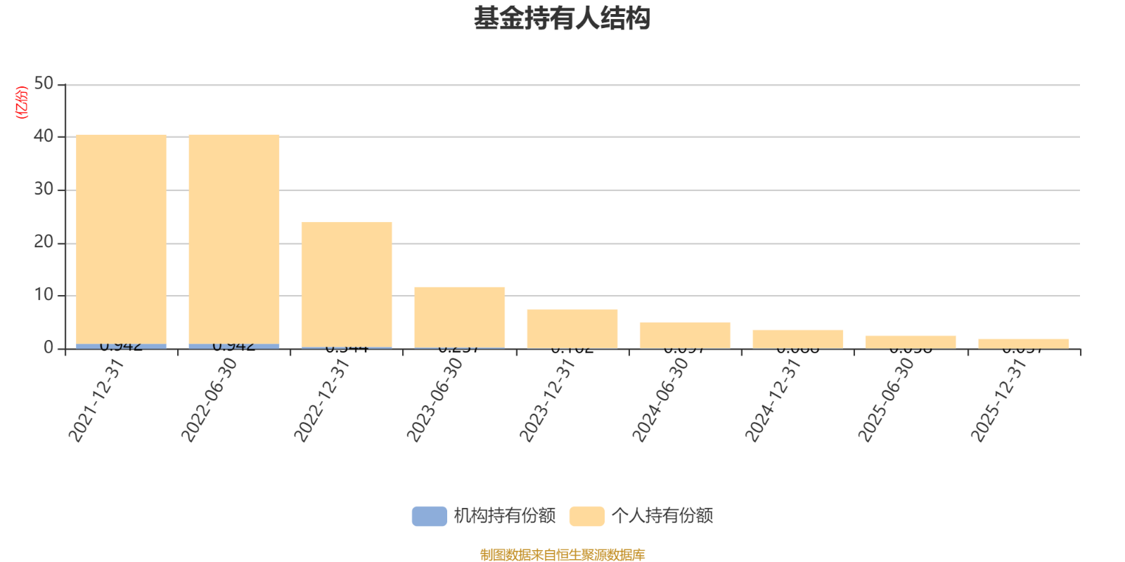 截至2025年12月31日,基金持有人共计2398户,合计持有1.84亿份。其中管理人员工持有0.97份,机构持有份额占比2.02%,个人投资者占比97.98%。