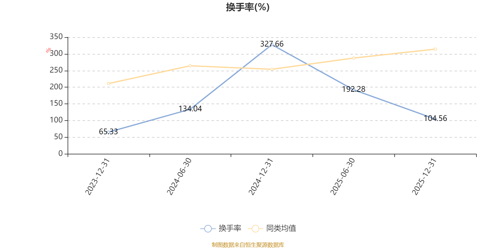截至2025年12月31日,基金最近一年换手率约305.88%,持续1年低于同类均值。