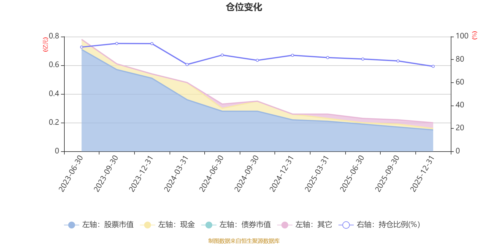 据定期报告数据统计,成立以来平均股票仓位为83.32%,同类平均为84.04%。2023年三季度末基金达到94.01%的最高仓位,2025年末最低,为74.11%。